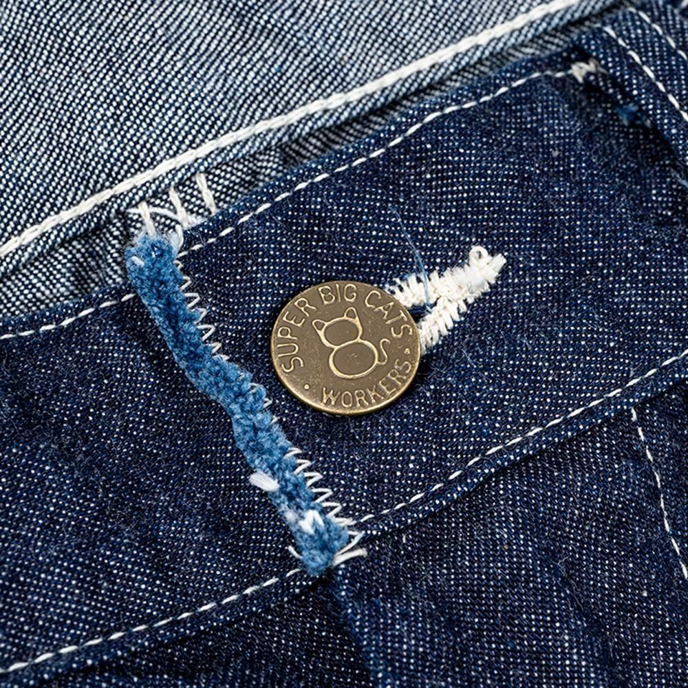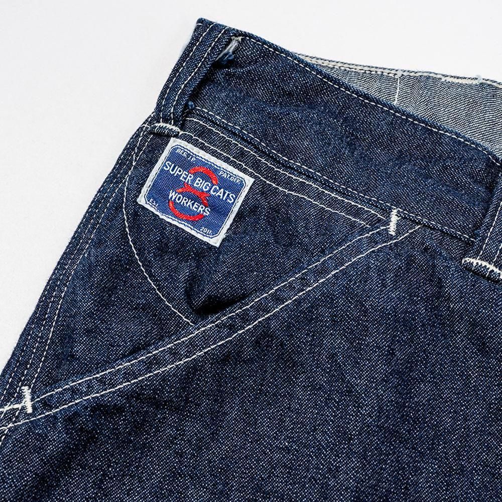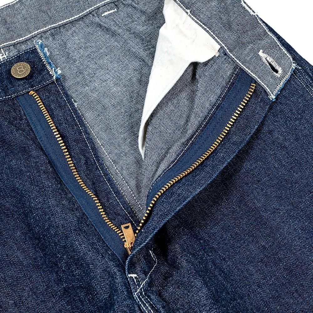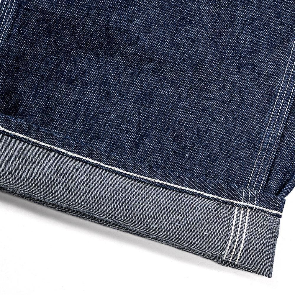 10オンスデニム、自然なムラ感のある糸を使ったもの。使う所は無いのですが、わざわざ耳付き生地を使っています。